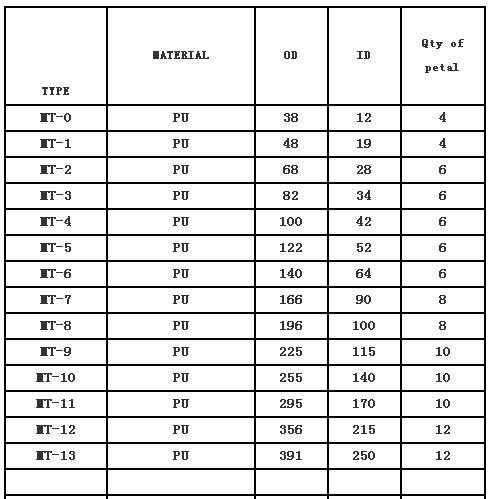 執(zhí)行標準:GB/T 5272-85。型號范圍:MT1-MT13,硬度ShoreA95±2A。顏色:黃色/白色。產(chǎn)品均采用 聚氨酯材料生產(chǎn),具有高、高回彈性、耐油耐水及優(yōu)異的疲勞強度和抗沖擊性等優(yōu)越性能,使得產(chǎn)品質量 優(yōu)異!各種型號聚氨酯梅花墊如下:MT型梅花墊(MT1-MT13),GR型梅花墊(GR19-GR125)、GS型梅花墊(GS9-GS38),T型六角靠背輪墊(六角彈性墊),液力偶合器梅花墊(YOX),及各種非標梅花墊。泊頭市利群聯(lián)軸器有限公司廠家經(jīng)營,