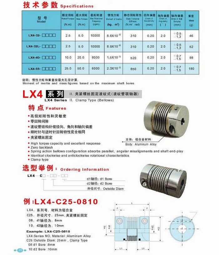 波紋管聯(lián)軸器是用外形呈波紋狀的薄壁管(波紋管)直接與兩半聯(lián)軸器焊接或粘接來傳遞運(yùn)動(dòng)的。這種聯(lián)軸器的結(jié)構(gòu)簡單,外形尺寸小,加工安裝方便,傳動(dòng),主要用于要求結(jié)構(gòu)緊湊,傳動(dòng)精度較高的小功率機(jī)械和控制機(jī)構(gòu)中。波紋管的材料為銅合金(如錫磷青銅QSn6.5-0.5 )和不銹鋼(Cr18Ni9Ti)。