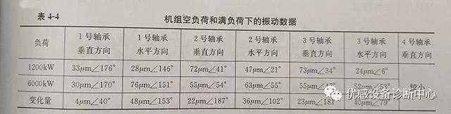 表4-4給出了大、小負(fù)荷兩種工況下的振動數(shù)據(jù)。從表中可以看出: