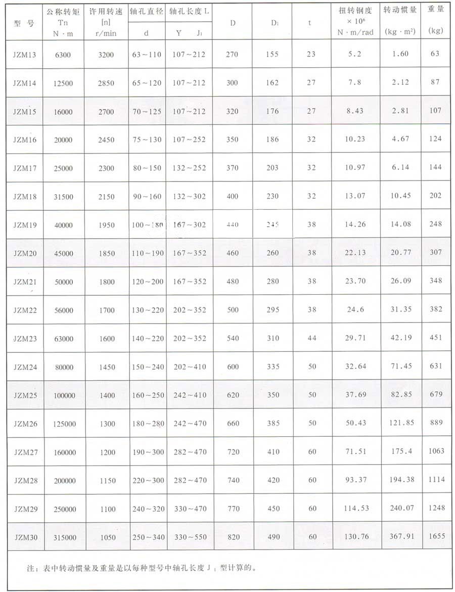 JZM型重型機(jī)械用膜片聯(lián)軸器 (JB/ZQ4717-98) 基本參數(shù)為: